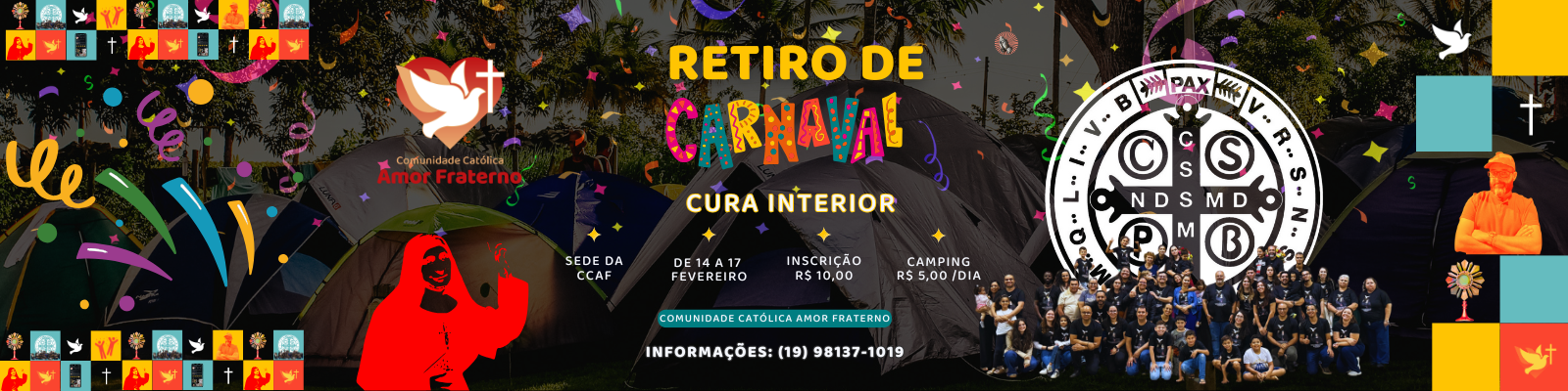 Enquanto muitos fogem do silêncio, nós escolhemos mergulhar no amor que cura, restaura e recomeça histórias. De 14 a 17 de fevereiro de 2026, a Comunidade Católica Amor Fraterno abre suas portas para o Retiro de Carnaval de Cura Interior — dias preparados por Deus para quem deseja sarar feridas, reorganizar o coração e experimentar a presença viva do Espírito Santo. 🙏🔥